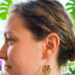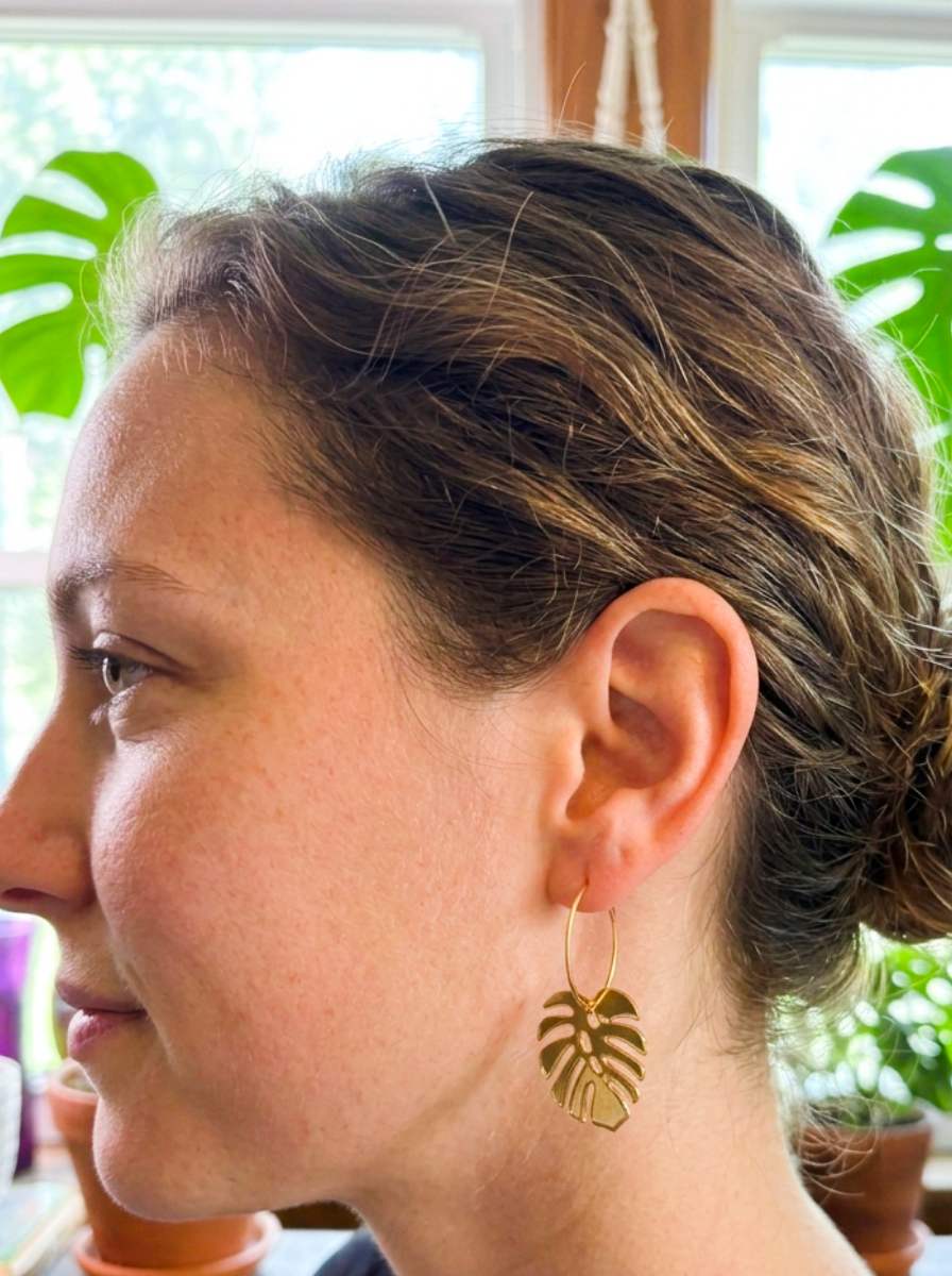Bring a breezy, modern twist to your look with our Clear Monstera Hoop Earrings. Featuring sleek monstera leaf charms crafted in crystal-clear acrylic, these earrings offer a fresh, lightweight take on a tropical favorite. Suspended from elegant gold-tone hoops, they strike the perfect balance between subtle and statement-making.