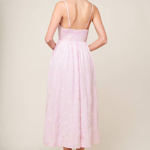 ALONG THE SHORE PINK WOVEN MIDI DRESS
