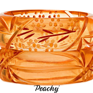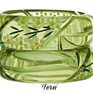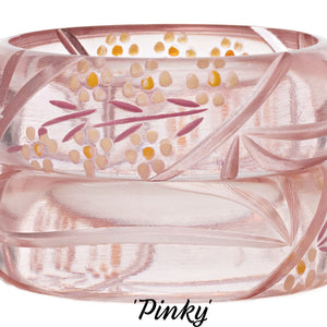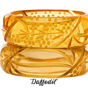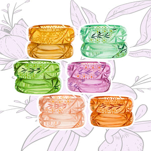 This is our adorable Darling Bangle Collection!  Pretty pastel cuffs in 6 delightful colors are hand-carved and painted to create just the right look to wear with absolutely everything!