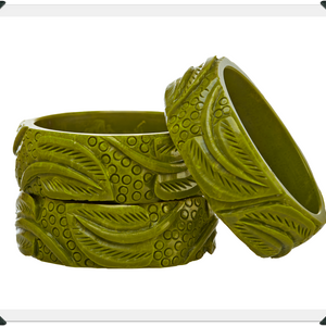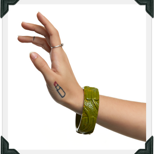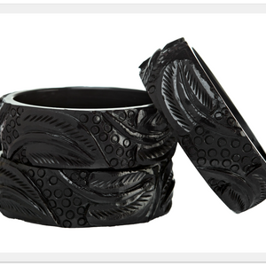 • Meet our enchanting Collection of carved Lucite bracelets!