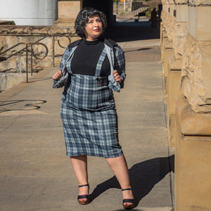 Introducing the Billie Jacket, the essential addition your wardrobe's been waiting for! As winter approaches, nothing exudes the cozy vibes of the season quite like a charming plaid pattern, and nothing says elegance quite like a finely tailored jacket. This cropped Charcoal Plaid jacket is the perfect match for our Charcoal Plaid Jumper Pencil, creating a polished suit-inspired ensemble. However, don't limit yourself – this 1950's-style jacket complements various pieces in your wardrobe, whether it's skirts, pants, or a classic pencil dress. Its standout features include bold black buttons and eye-catching contrasting collar and cuffs.
