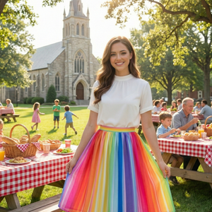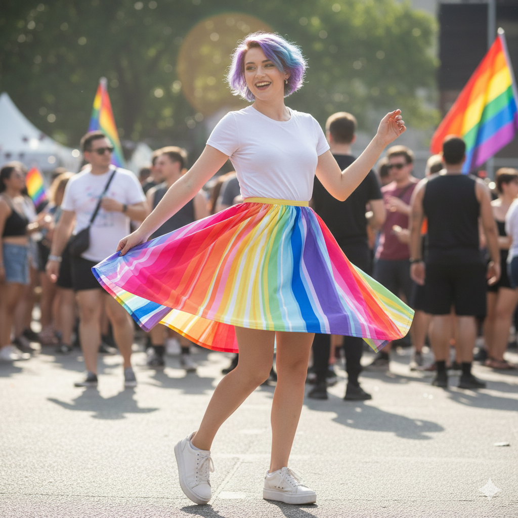 Our best selling Gloria Skirt in Rainbow Stripe. Cute, fun and one of a kind! Perfect for girlies that LOVE color. Great for showing your pride 🌈